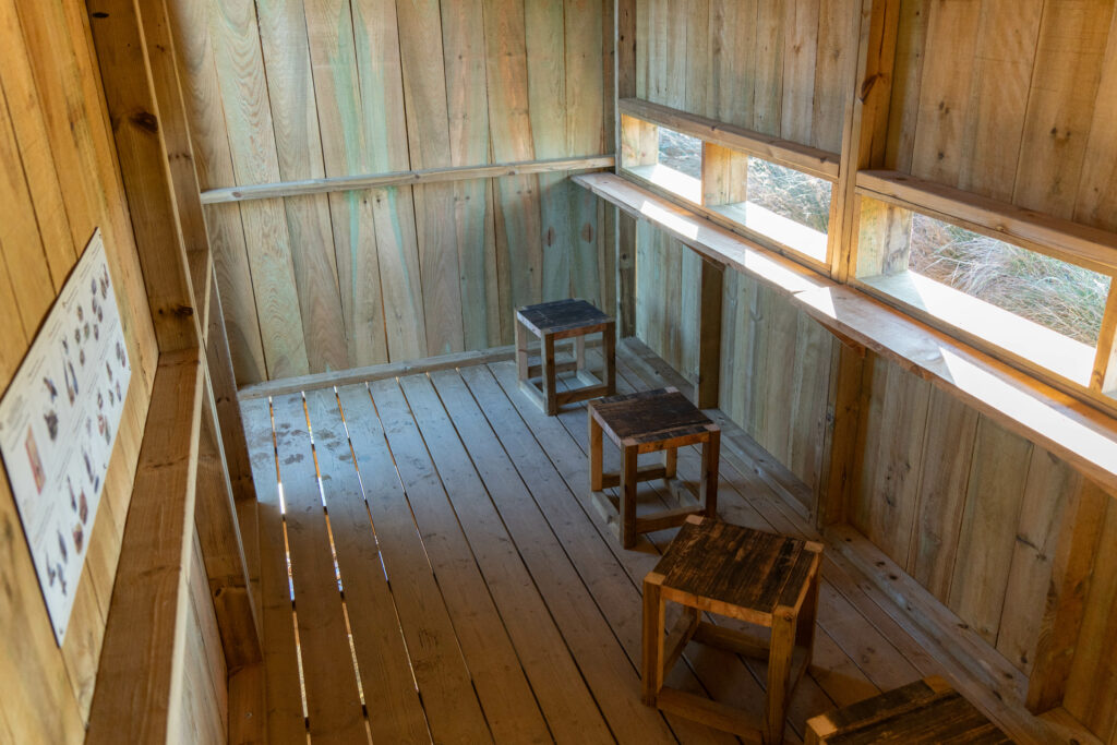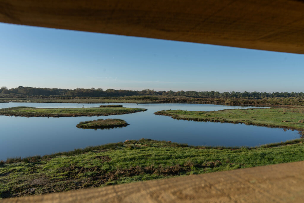 Reconstruite dans sa totalité, cette cabane d’observation est entièrement sur pilotis. Elle offre une vue panoramique sur l’étendue de la vasière Spatule, une zone appréciée des Spatules blanches et des limicoles comme les Courlis ou les Barges. Un double niveau permet aux visiteurs de choisir entre prendre de la hauteur ou rester proche du sol.