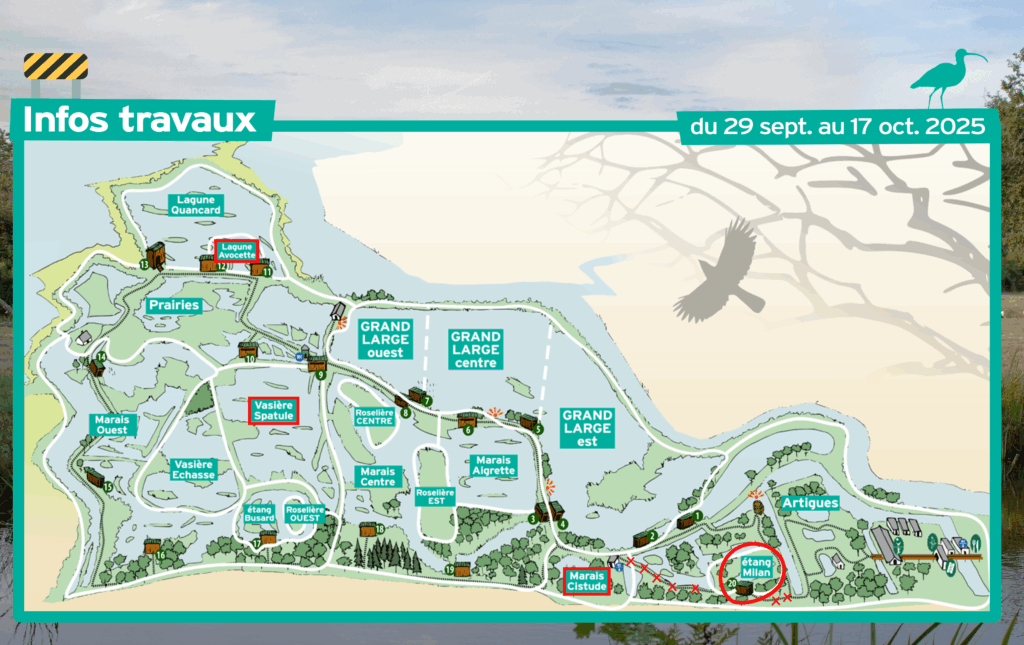 🚧 Il est temps pour l’observatoire 20 de se refaire une beauté ! Le sentier pour s’y rendre sera fermé du 29 septembre au 14 octobre. Cet observatoire nécessitant d’être totalement reconstruit, nous vous remercions pour votre patience et votre compréhension.