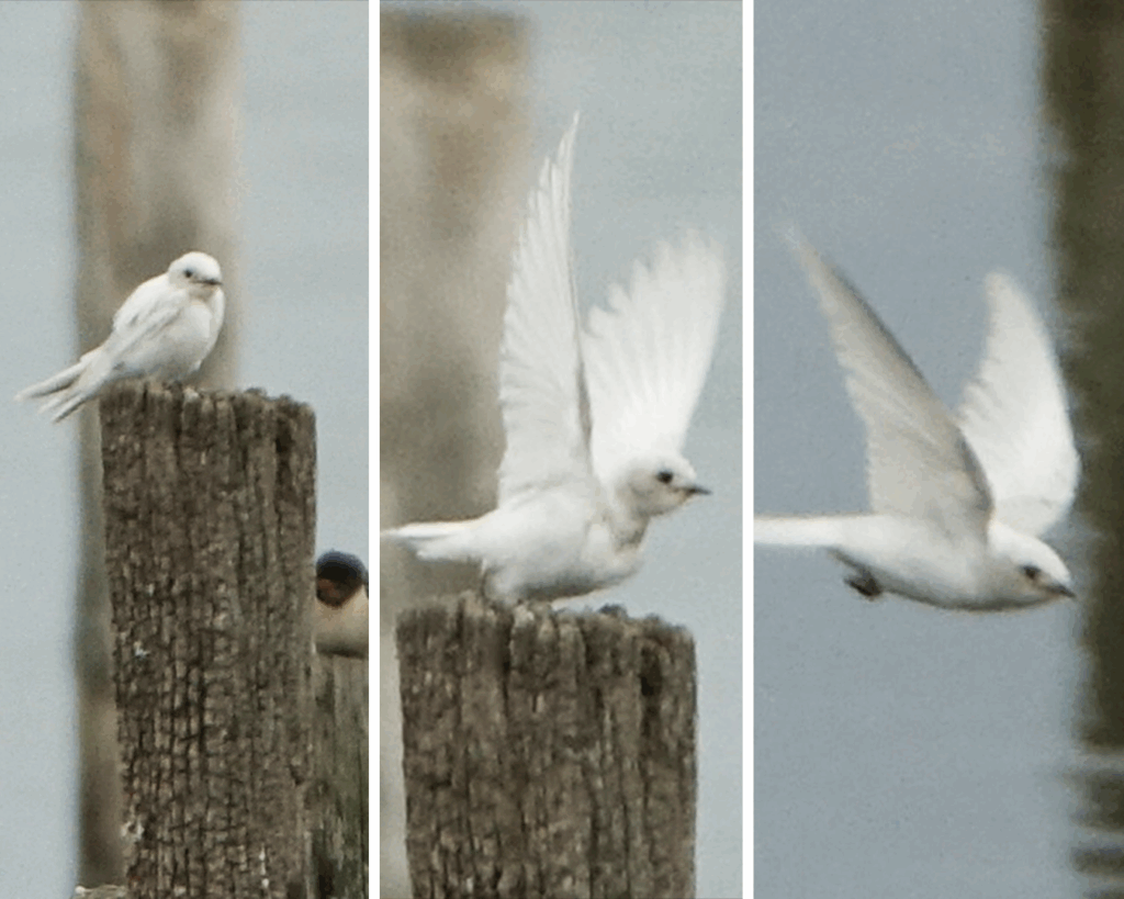 Vous avez été quelques-uns à remarquer la présence d’un individu peu commun parmi les hirondelles rustiques de passage dans la Réserve ces derniers jours : une Hirondelle rustique toute de blanc vêtue !